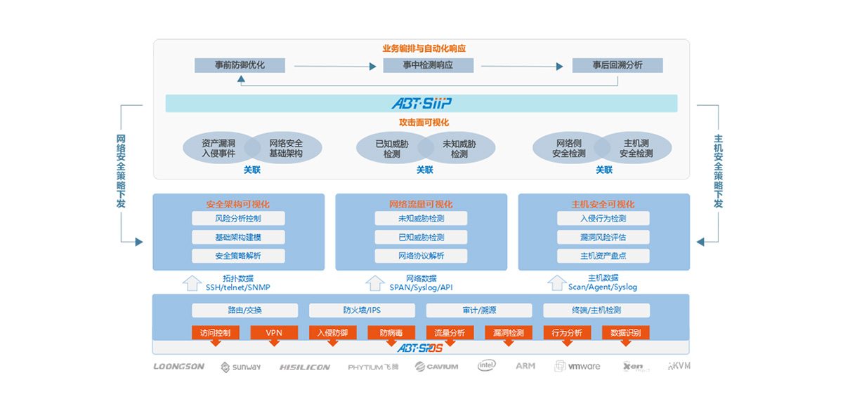 基于SPOS网络安全系统平台提供的大数据与AI技术,深度融合基础架构建模、脆弱性评估、高级威胁检测技术,构建可视化网络安全风险评估、态势监测和响应处置模型。实现资产、业务、网络架构、安全控制、脆弱性与入侵事件等要素的关联分析,对给定系统脆弱性的暴露程度进行精确量化评估。帮助用户看清并收敛网络攻击面,及时准确发现攻击行为,自动化实现策略的编排下发和安全事件的响应。